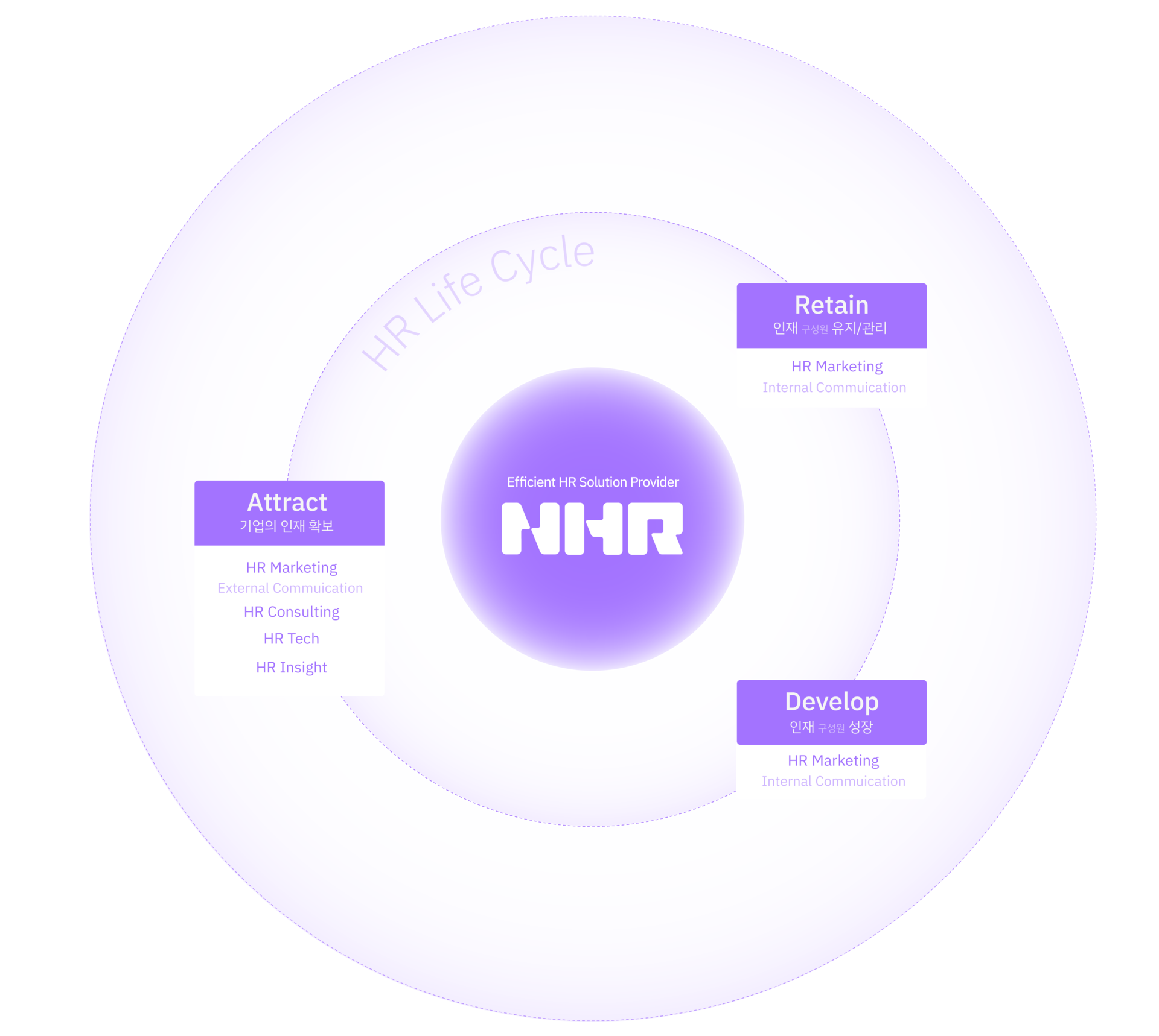 NHR Solution채용 제도 진단, 채용 직무 분석, 채용 역량 모델링, 채용평가 재설계 및 교육, 서류/필기/면접전형 대행